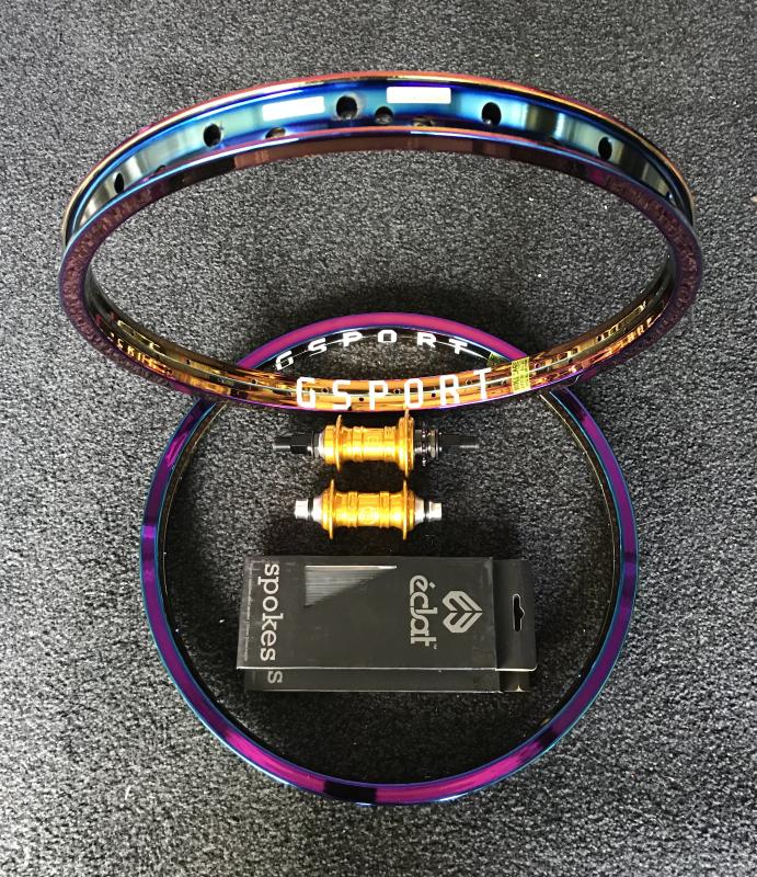 Front Wheel: Profile Mini Front Hub laced to GSport Rollcage Front Rim with Eclat Spokes & Nipples. Odyssey Rim Tap, Tubolito Tube