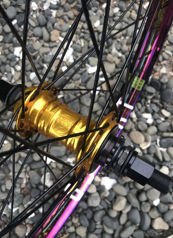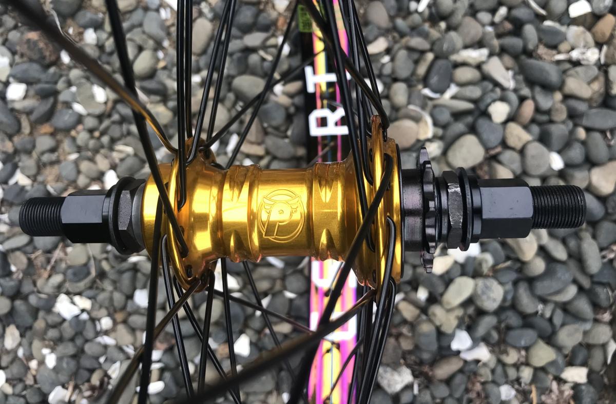 Rear Wheel: Profile Mini Rear Hub laced to GSport Rollcage Rear Rim with Eclat Spokes & Nipples. Odyssey Rim Tape, Tubolito Tube