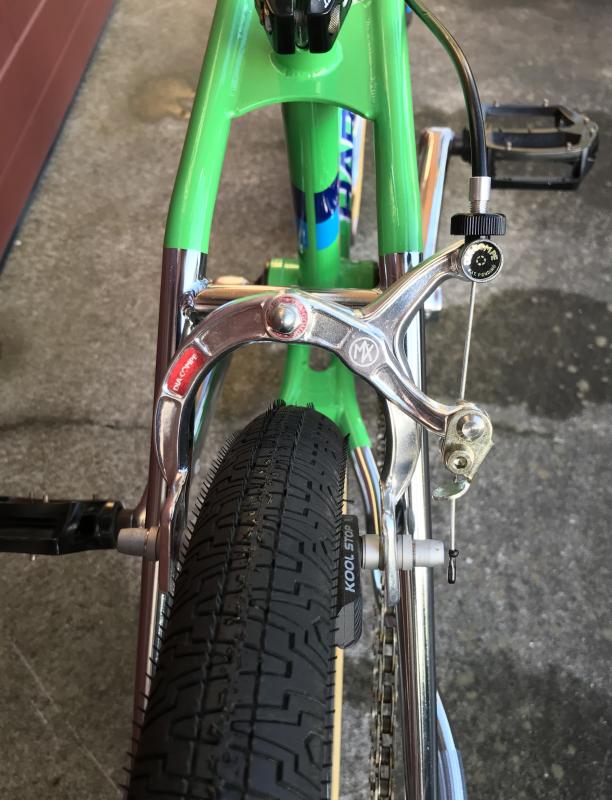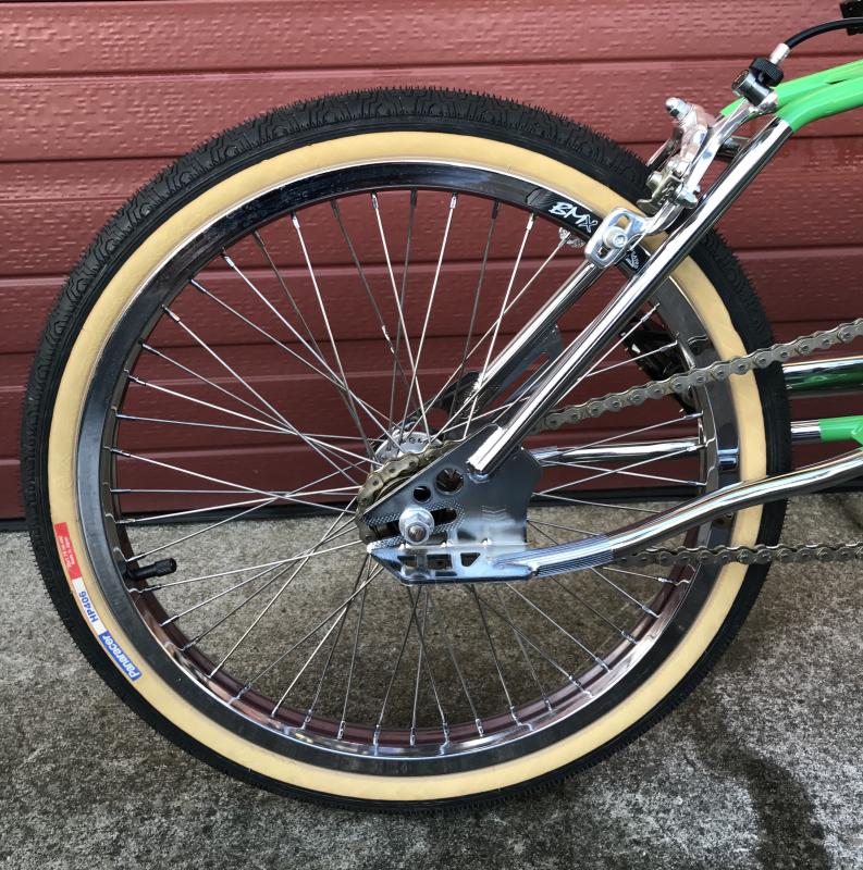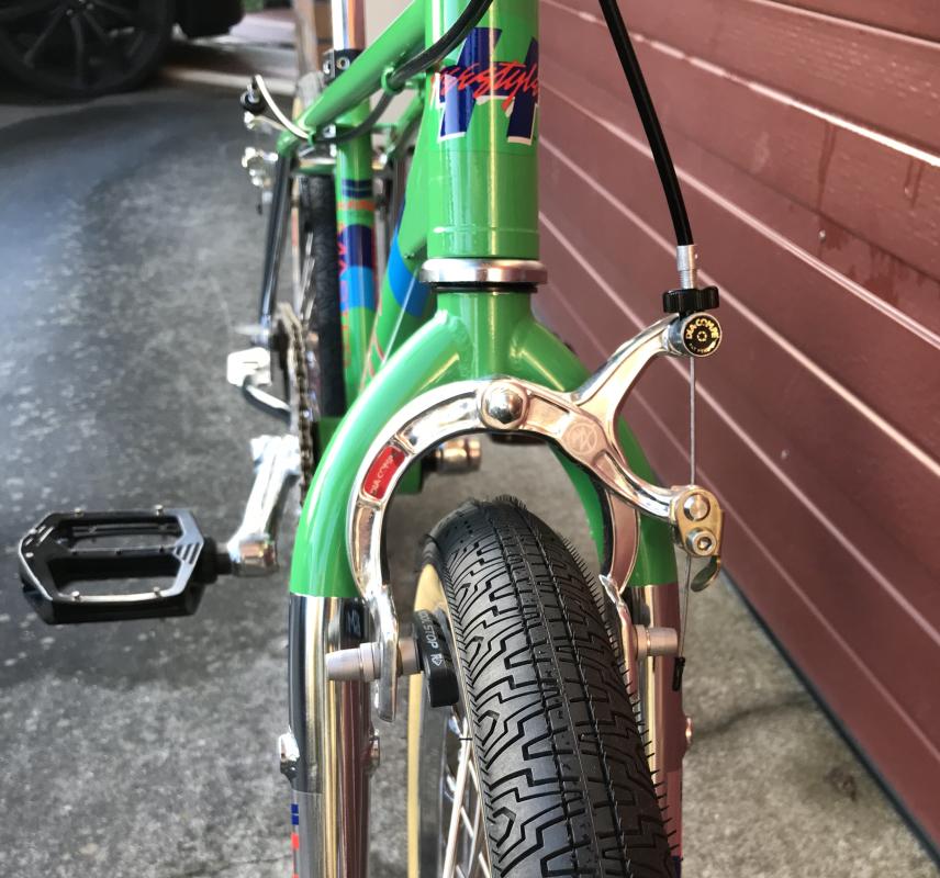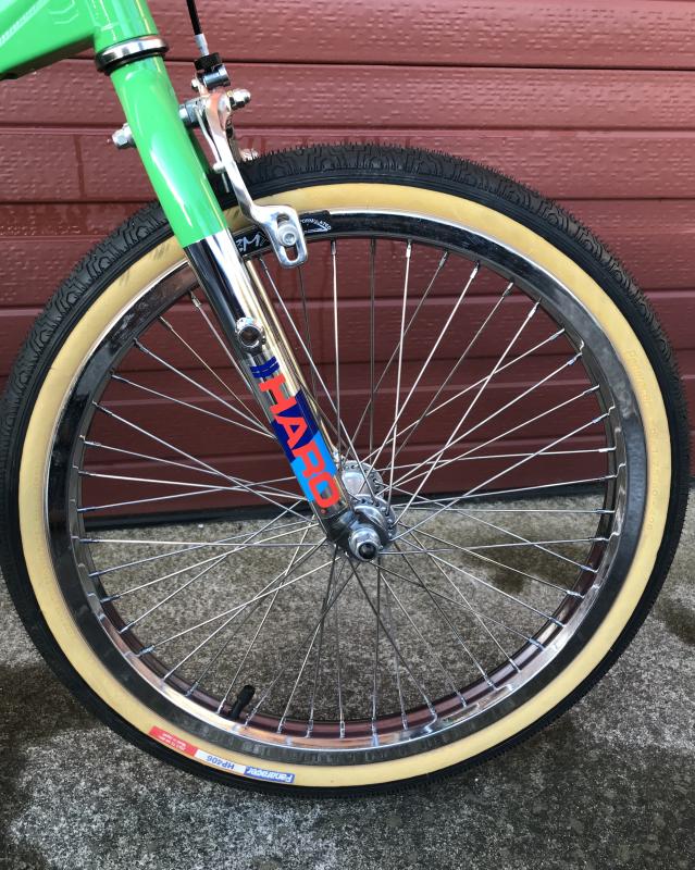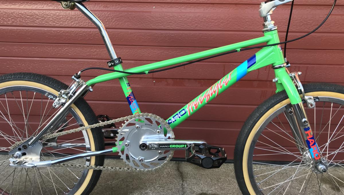 Our customer had a Haro Master Frame. He then purchased a 2016 Repop 1986 Haro Sport (a previous custom build we had completed for one of regulars). Reluctantly our customer contacted us and asked if we could pull the Sport apart and transfer all the parts to the Haro Master frame he had. The bars were rechromed, the stem top was powdered coated black and the wheelset was a custom wheel build.