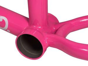 The Shortcut V2 frame features the shortest chainstay in BMX, measuring just 12.4″. With an investment-cast chainstay yoke, Fit was able to shorten the rear end while maintaining maximum tyre clearance. While the Shortcut is one of the most responsive frames on the market, it is also one of the most reliable. The investment-cast dropouts with integrated chain tensioners are built to withstand heavy peg use without weld failures or wheel movement. The Shortcut V2 now comes with shorter top tube lengths and a lower standover height. This makes it perfect for tech riders, those learning new tricks, or riders seeking a slightly smaller, nimbler frame.