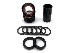 The Saltplus Euro Bottom Bracket is made for 19mm or 22mm crank spindles and threaded Euro bottom bracket frames. High-quality four bearing design with aluminum cups. Size and side printed clearly on the cups for easy installation.