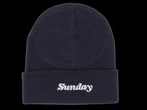 Sunday - Classy Cuff Beanie Part of the Winter lineup. White embroidered Rockwell logo on a navy knit beanie. 8" Cuff Beanie Acrylic Blend Knit