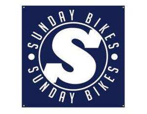 Sunday - S Logo Banner Weather resistant vinyl banner. Colour: Blue/White